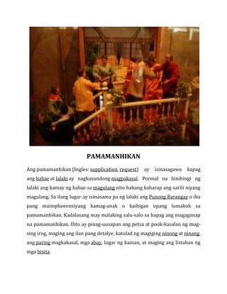 Ang mga Pilipino ay kadalasang malalapit sa. Ang mga sumusunod ay deskripsyon kung paano at kailan nila ipinakikita ang mga katangian na ito. Naipapakita rin ang epekto ng ating kasaysayan sa ating pamumuhay ngayon.